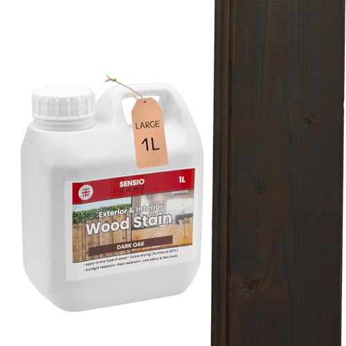 Sensio Home Dark Oak Wood Stain Big Value 1L Size Water Based Non Toxic Environmentally Friendly Wood Dye Indoor and Outdoor Furniture Wood Timber Skirting Doors Fence