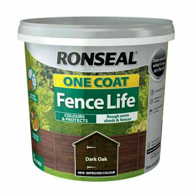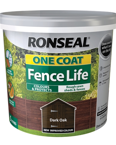 Ronseal 5 Litre Dark Oak One Coat Fence Life Fast Quick Dry Garden Shed Paint