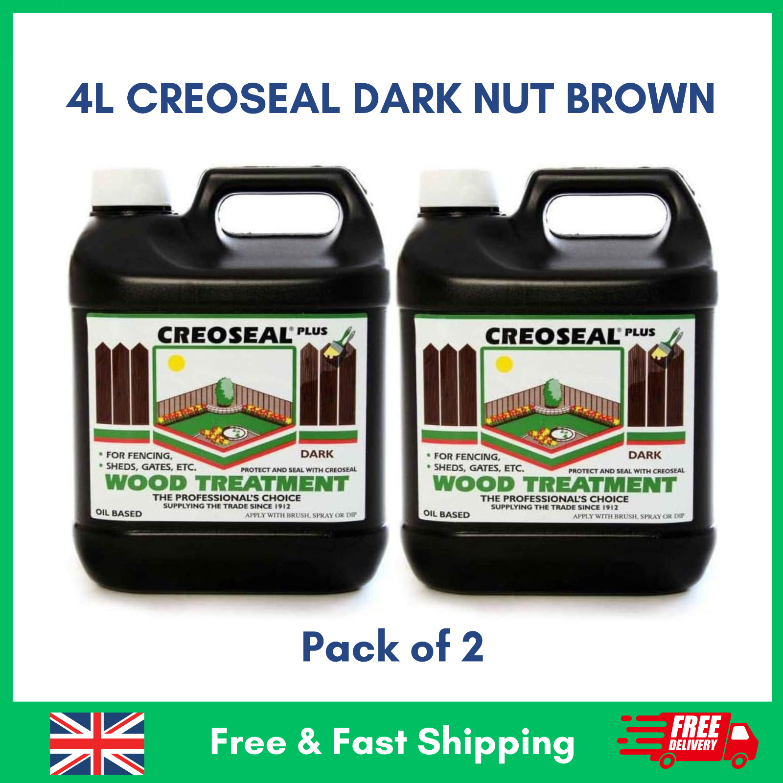2 x 4L CREOSEAL DARK NUT BROWN Oil Based Fence Timber Paint Creocote 8L