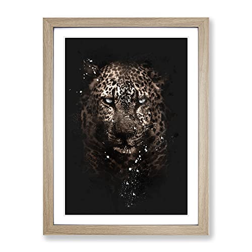 Leopard In The Dark Paint Splash Modern Framed Wall Art Print, Ready to Hang Picture for Living Room Bedroom Home Office Décor, Oak A3 (34 x 46 cm)