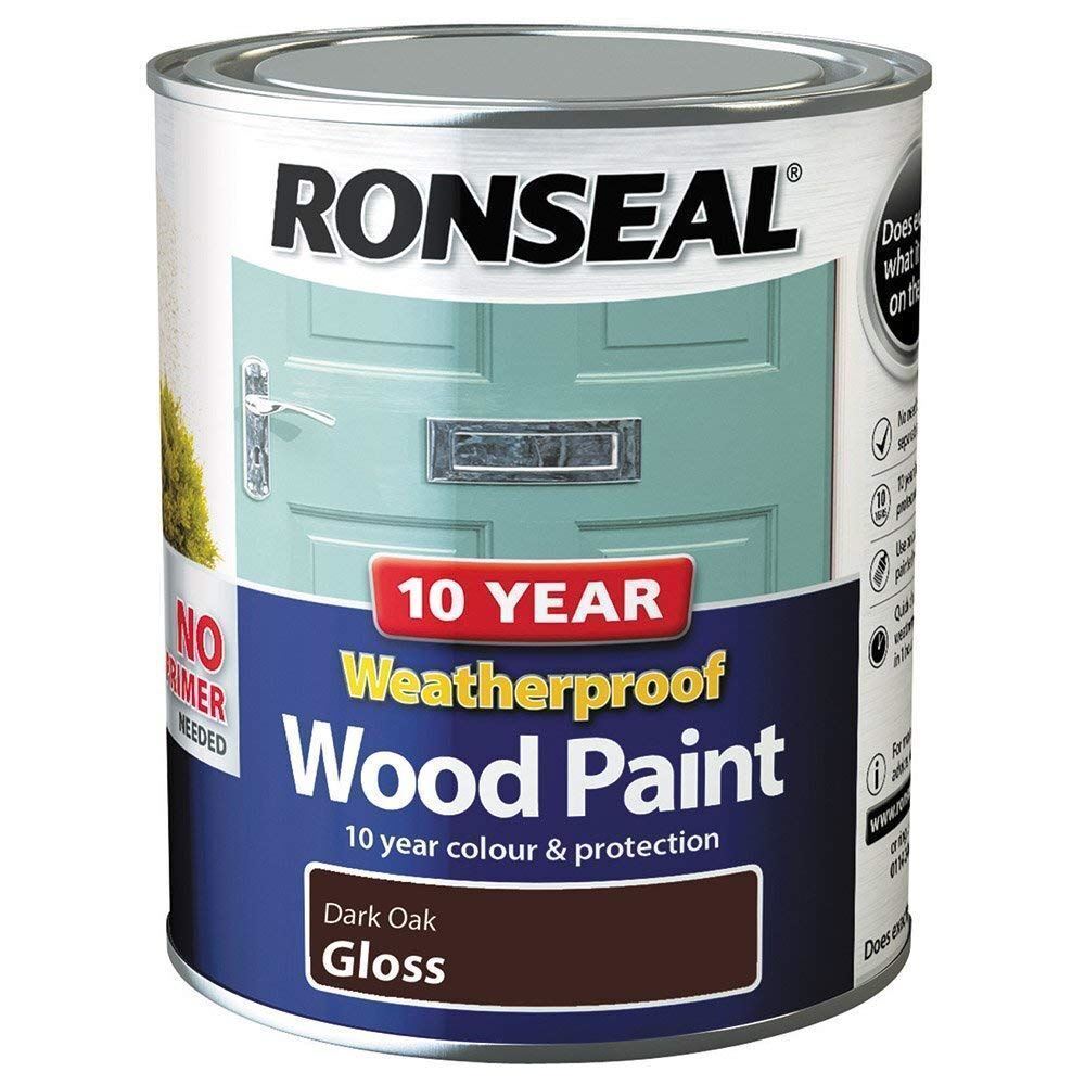 Ronseal - 10 Year Weatherproof Wood Paint Dark Oak Gloss 750ml