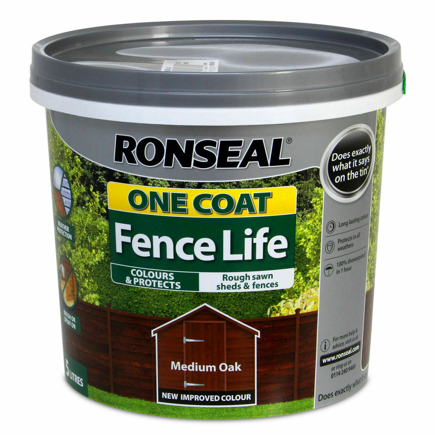 Ronseal 5 Litre Medium Oak One Coat Fence Life Fast Quick Dry Garden Shed Paint