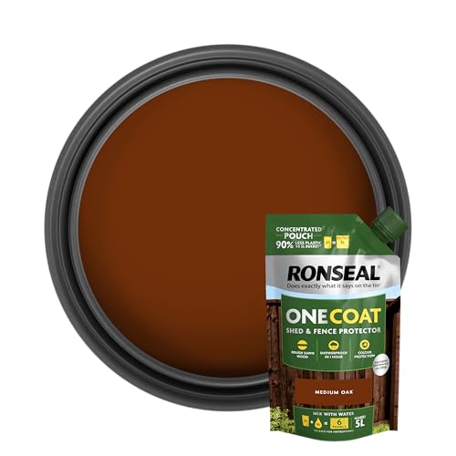 Ronseal One Coat Shed & Fence Pouch Meduim Oak 950ml - Mix with Water to Make 5 Litres of Paint for Effortless Coverage and Long-Lasting Protection