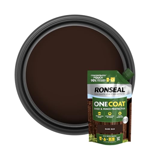 Ronseal One Coat Shed & Fence Pouch Dark Oak 950ml - Mix with Water to Make 5 Litres of Paint for Effortless Coverage and Long-Lasting Protection