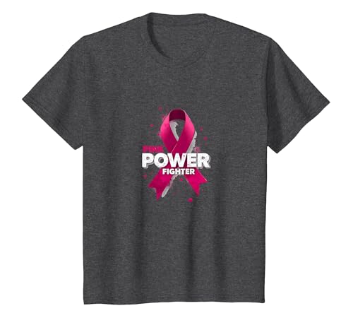 Pink Power Fighter: Breast Cancer Awareness Warrior T-Shirt, Kids, Dark Heather Grey, 12 Years
