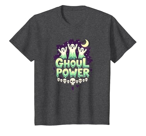 Ghoul Power: Spooky Halloween Fun for Ghost Enthusiasts T-Shirt, Kids, Dark Heather Grey, 12 Years