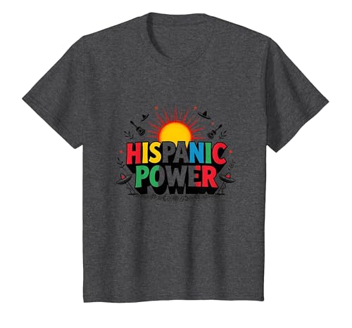 Spanish Heritage Month Hispanic Power Celebration T-Shirt, Kids, Dark Heather Grey, 12 Years