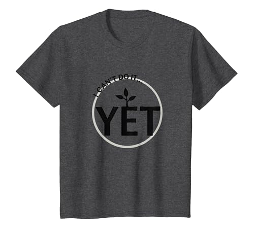 I Cant Do It Yet Power of Yet Growth Mindset Motivational T-Shirt, Kids, Dark Heather Grey, 12 Years