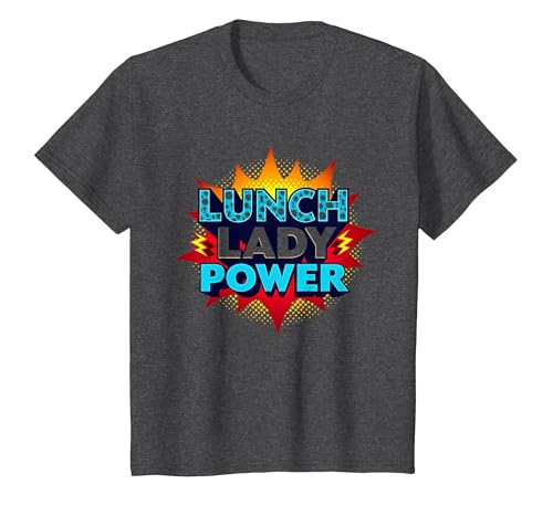 Lunch Lady Power: Retro Pop Art for Food Service Heroes T-Shirt, Kids, Dark Heather Grey, 12 Years