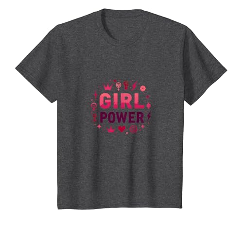 Girl Power: Empowering Feminine Strength and Unity T-Shirt, Kids, Dark Heather Grey, 12 Years