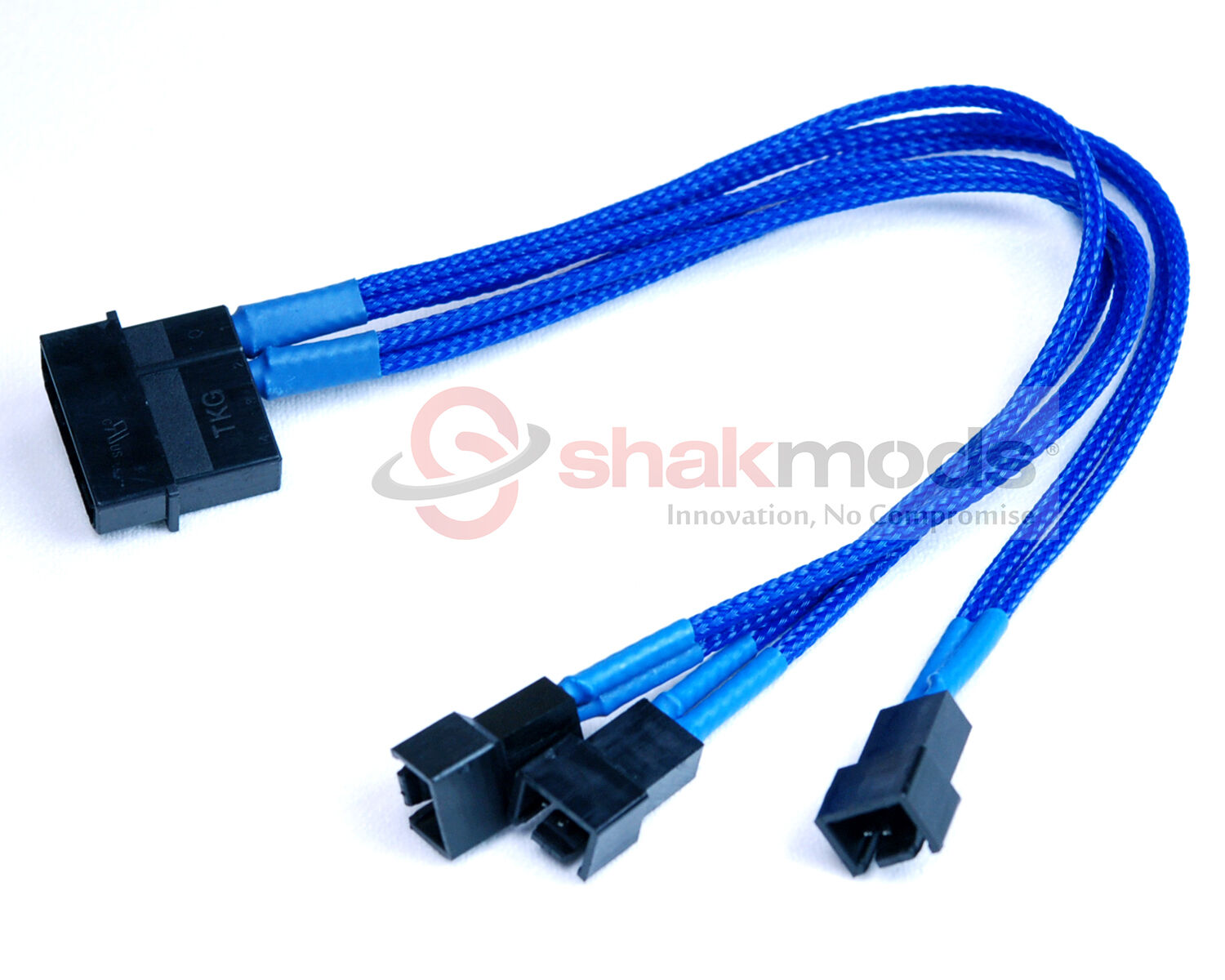 Shakmods Molex to 3 x 3pin Fan 20cm Y Splitter Power Cable 12v Dark Blue Sleeved