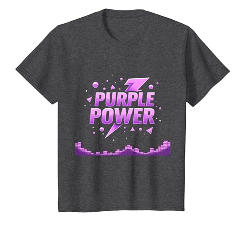 Purple Power: Energetic Boys' Superhero Statement T-Shirt, Kids, Dark Heather Grey, 12 Years