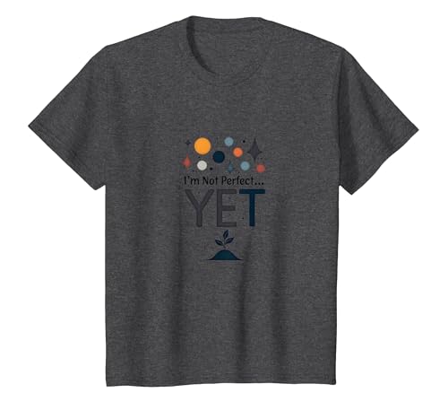 Im Not Perfect Yet The Power of Yet Motivational Quote T-Shirt, Kids, Dark Heather Grey, 12 Years