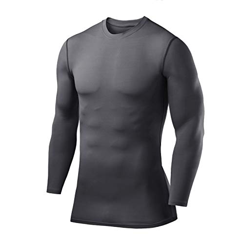 PowerLayer Kids Base Layer Long Sleeve Compression Shirt. Lightweight and Moisture Wicking Thermal Top for Football, Rugby, Soccer and Gym for BoysDark Grey, 10-12 Years (Boys Large)
