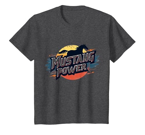 Mustang Power School Spirit Retro Sunset Stampede Rally T-Shirt, Kids, Dark Heather Grey, 12 Years