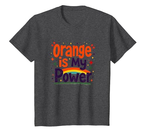 Girls Orange is My Power Color Motivational Quote T-Shirt, Kids, Dark Heather Grey, 12 Years