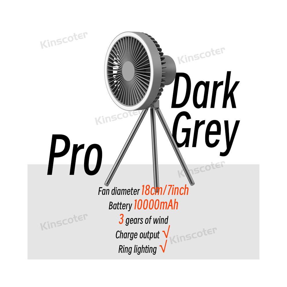 (Pro Dark Grey) Camping Fan Rechargeable Desktop Portable Circulator Wireless Ceiling Electric Fan with Power Bank LED Lighting Tripod