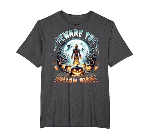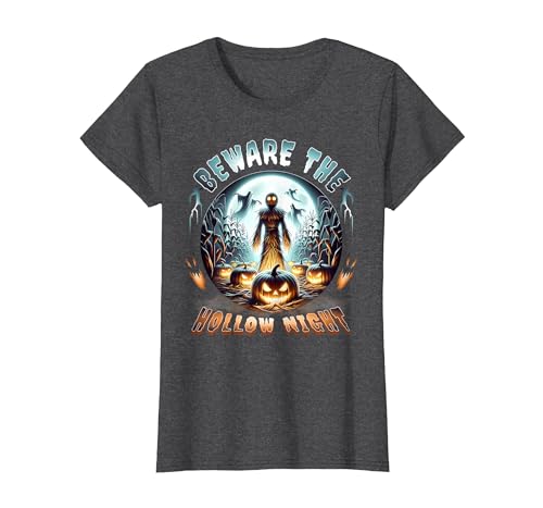 Beware The Hollow Night Scarecrow Horror Scene T-Shirt, Women, Dark Heather Grey, Medium