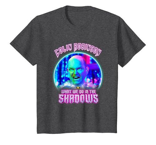 What We Do in The Shadows Colin Robinson Big Neon Portrait T-Shirt, Youth, Dark Heather Grey, 4T