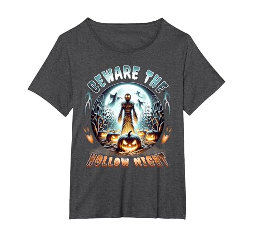 Beware The Hollow Night Scarecrow Horror Scene T-Shirt, Women, Dark Heather Grey, 3X-Large