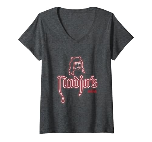 Women's What We Do in The Shadows Nadja's Neon Artline Sign Poster V-Neck T-Shirt, Dark Heather Grey, Medium