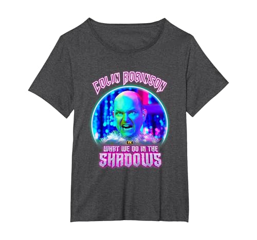 What We Do in The Shadows Colin Robinson Big Neon Portrait T-Shirt, Women's Plus, Dark Heather Grey, 6X