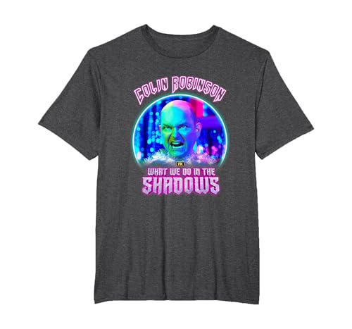 What We Do in The Shadows Colin Robinson Big Neon Portrait T-Shirt, Men, Dark Heather Grey, Large