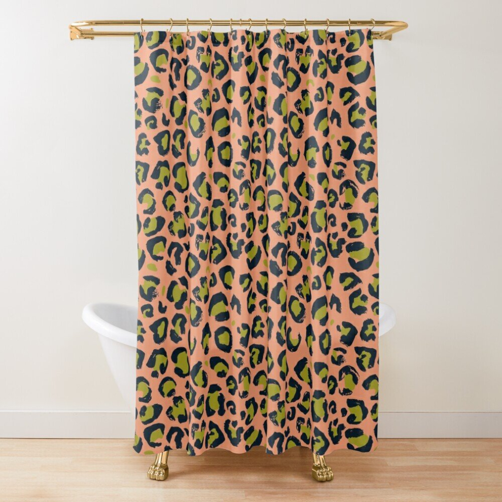 Shower Curtains Peach, olive and dark blue leopard for Bathroom Decor 72x72 inches