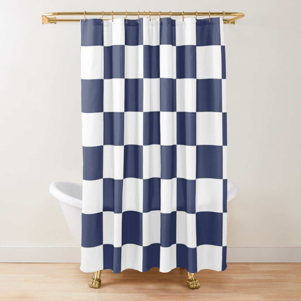 Shower Curtains Relaxing Aesthetic Navy Blue Dark Blue White Checkered Pattern for Bathroom Decor 72x72 inches