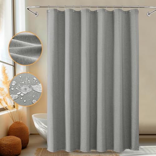 Shower Curtain, Heavy-Duty Linen-Texture Fabric Shower Curtain, Extra Soft Double-layer waterproof Shower Curtains With Smart Function Stainless Steel Hooks for Bathroom, 275 x 183cm (Dark Gray)