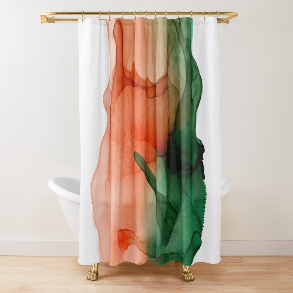 Shower Curtains Orange and Dark Green Abstract for Bathroom Decor 72x72 inches
