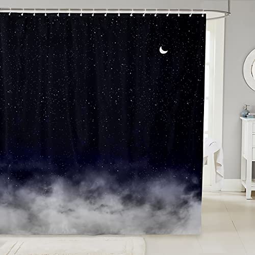 Loussiesd Shiny Star Bath Curtain Moon Star Sky Shower Curtain Gradient Dark Blue Grey Bathroom Fabric for Teens Stalls Bathtubs Romantic Style Waterproof Curtains 72x94 Inch
