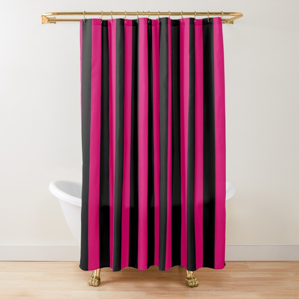 Shower Curtains Black and Dark Hot Pink Stripes Vertical Medium Stripes for Bathroom Decor 72x72 inches