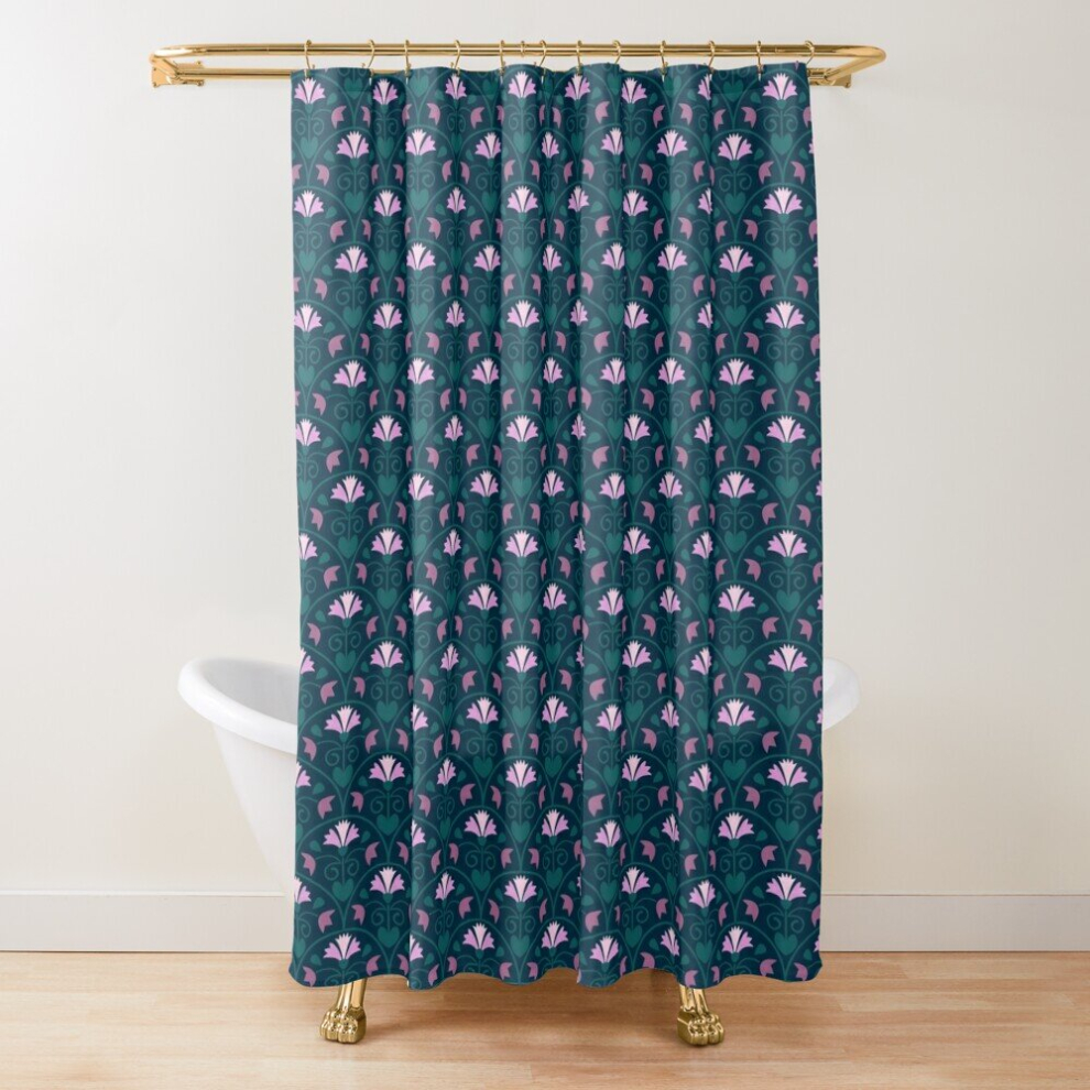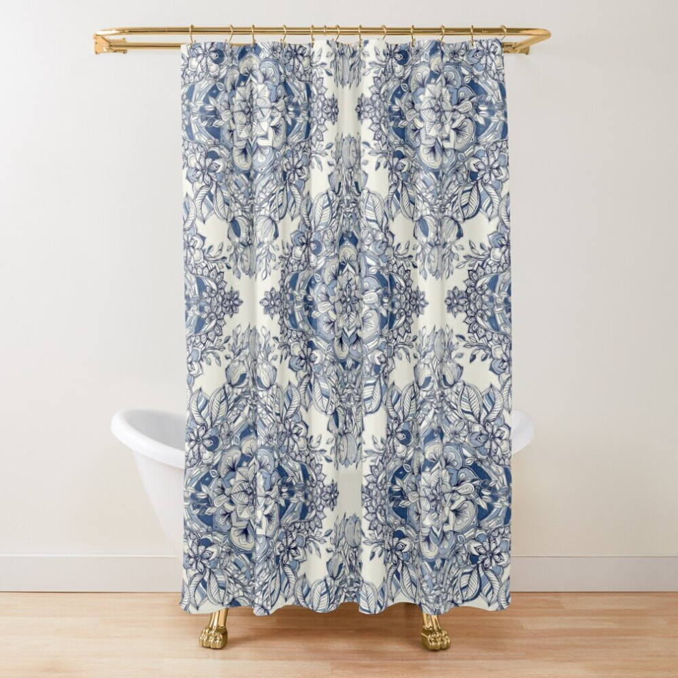 Shower Curtains Floral Diamond Doodle in Dark Blue and Cream for Bathroom Decor 72x72 inches