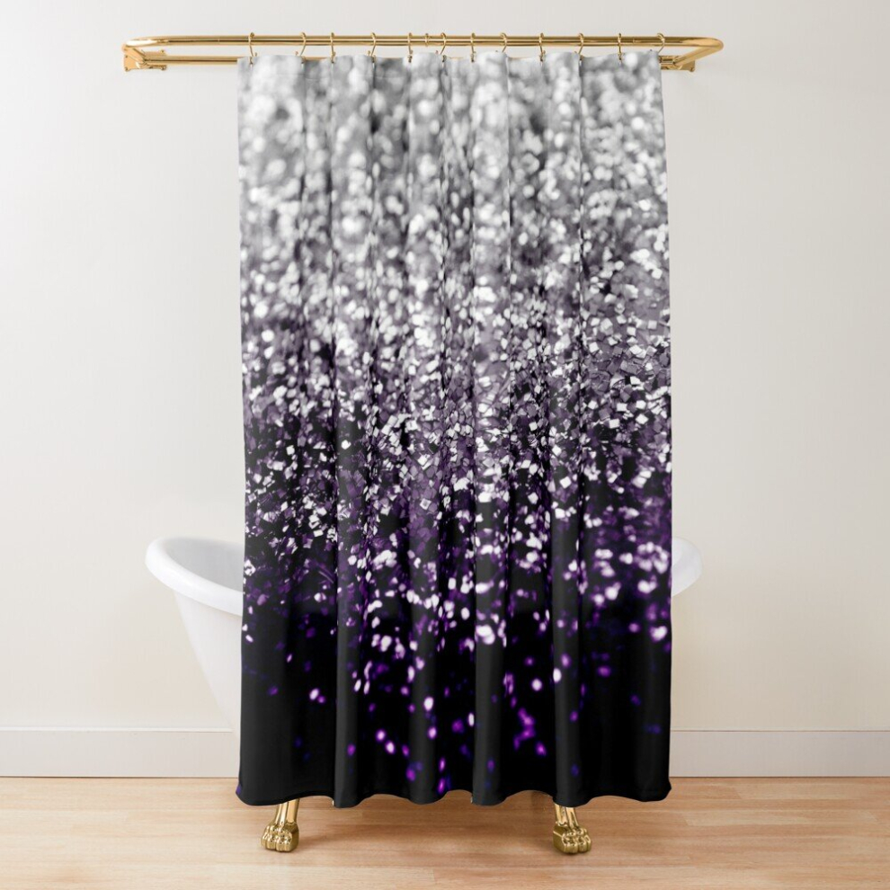 Shower Curtains Dark Night Purple Black Silver Glitter #1 (Faux Glitter) #shiny #decor #art for Bathroom Decor 72x72 inches