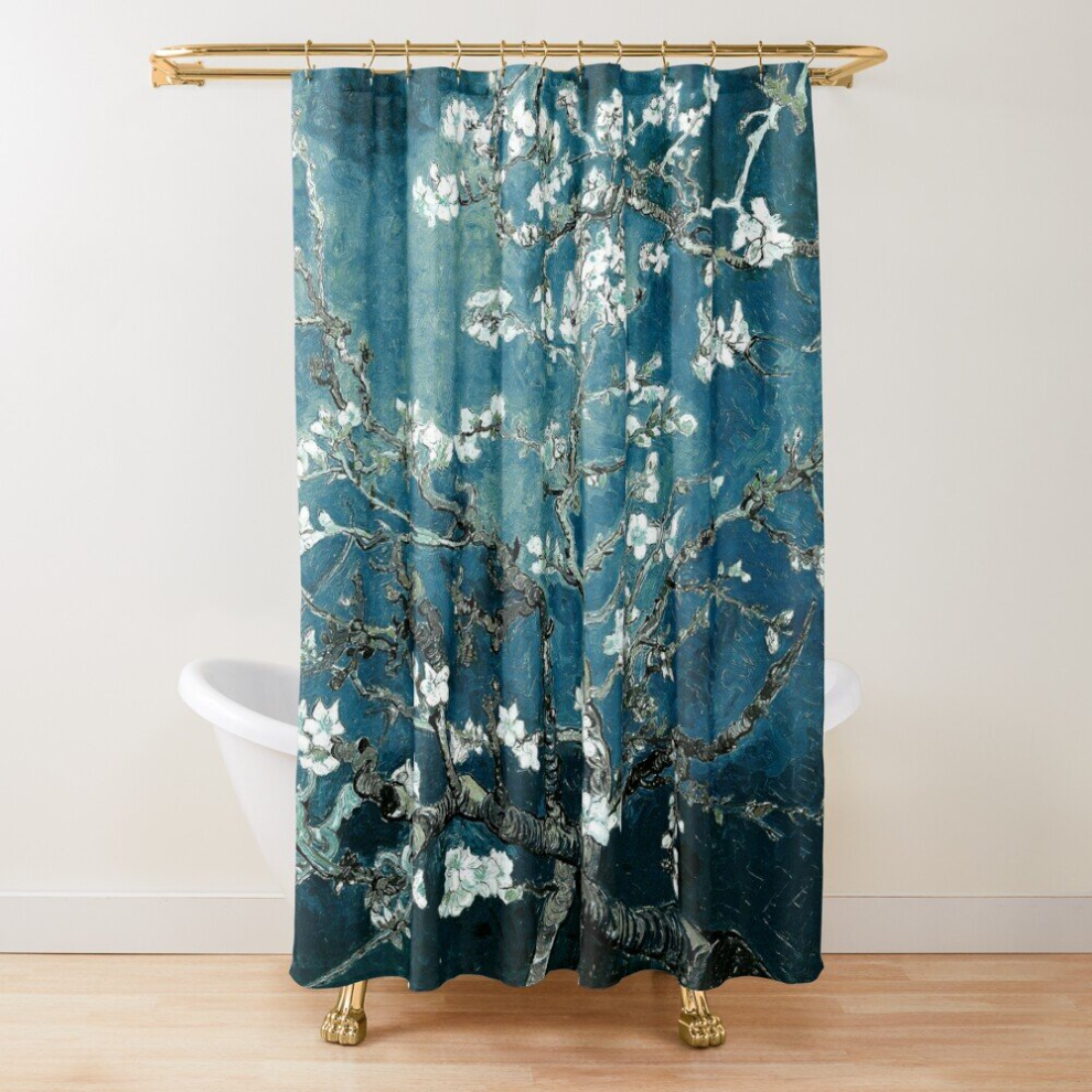 Shower Curtains Van Gogh Almond Blossoms Dark Teal for Bathroom Decor 72x72 inches