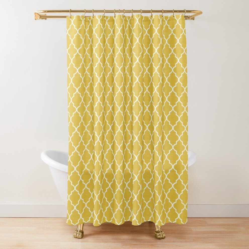 Shower Curtains Dark Sulphur yellow white quatrefoil for Bathroom Decor 72x72 inches
