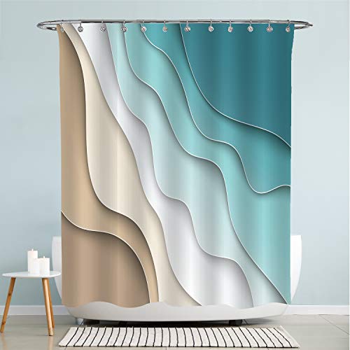 Turquoise Brown Cream Shower Curtain Beach Geometric Gradient Striped Dark Turquoise Shower Curtain Sets with Hooks, Bathroom Curtains Waterproof Polyester Fabric Bathroom Art Decor 72x72 Inches
