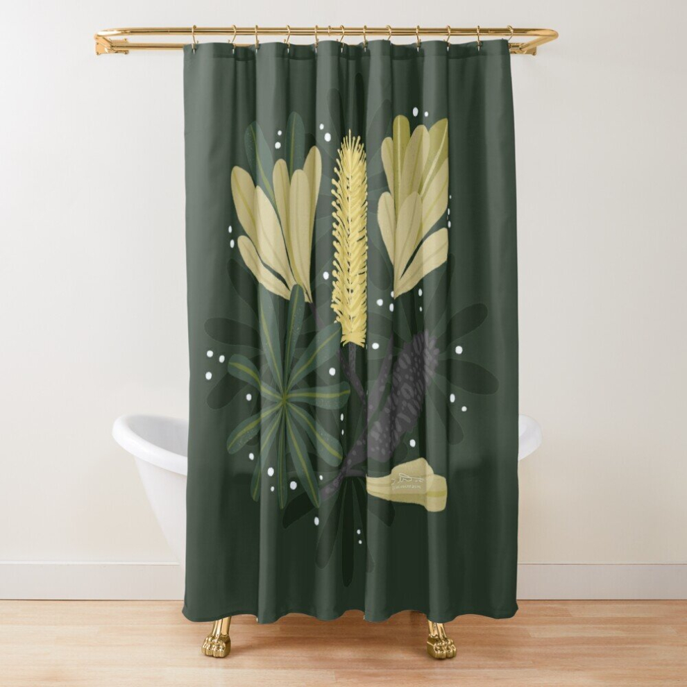 Shower Curtains Australian Lemon Bottlebrush in Dark Green Palette for Bathroom Decor 72x72 inches