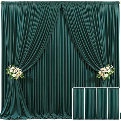 4 Panels Hunter Green Backdrop Curtain for Parties Wrinkle Free Dark Green Photo Curtains Backdrop Drapes Fabric Decoration for Baby Shower Birthday Party Photography 20ft(W) x 10ft(H)