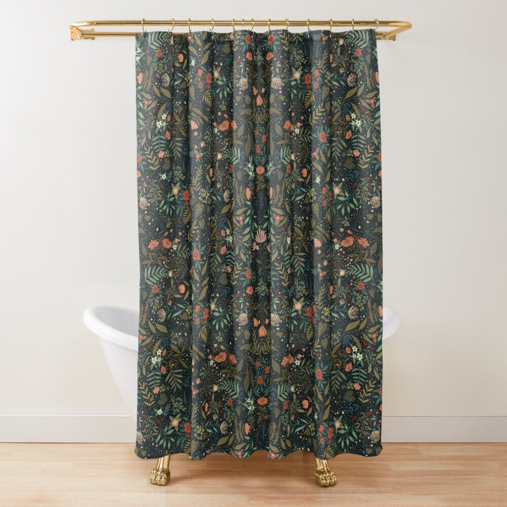 Shower Curtains Botanical Dark Floral for Bathroom Decor 72x72 inches