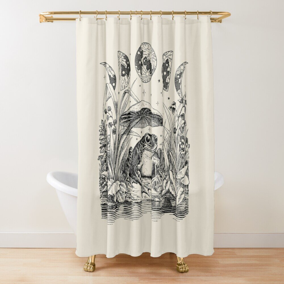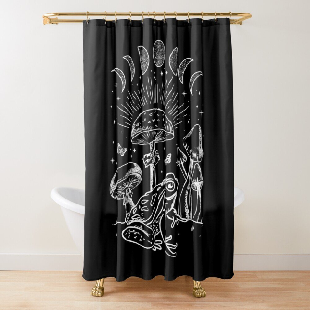 Shower Curtains Frog Under Mushroom Dark Academia Cottagecore Aesthetic Goth Mystical - Edgy Alternative Look Fungi for Bathroom Decor 72x72 inches