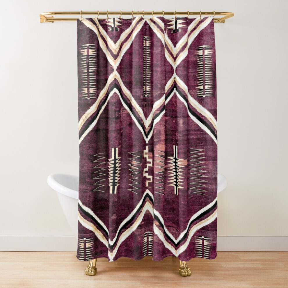 Shower Curtains NATIVE AMERICAN 130 YEAR OLD BLANKET - 2021 COLORIZED - BURNT DARK CHERRY for Bathroom Decor 72x72 inches