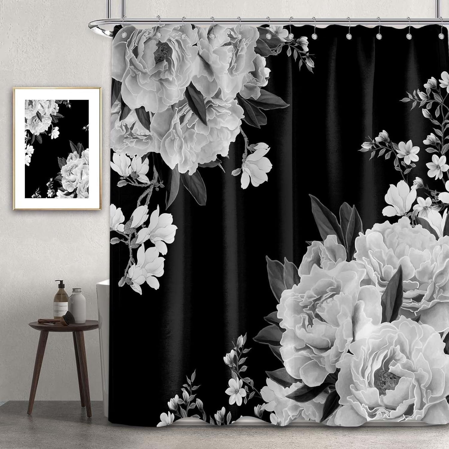 Sonbraux Black and White Shower Curtains for Bathroom Floral Grey Flower Dark W