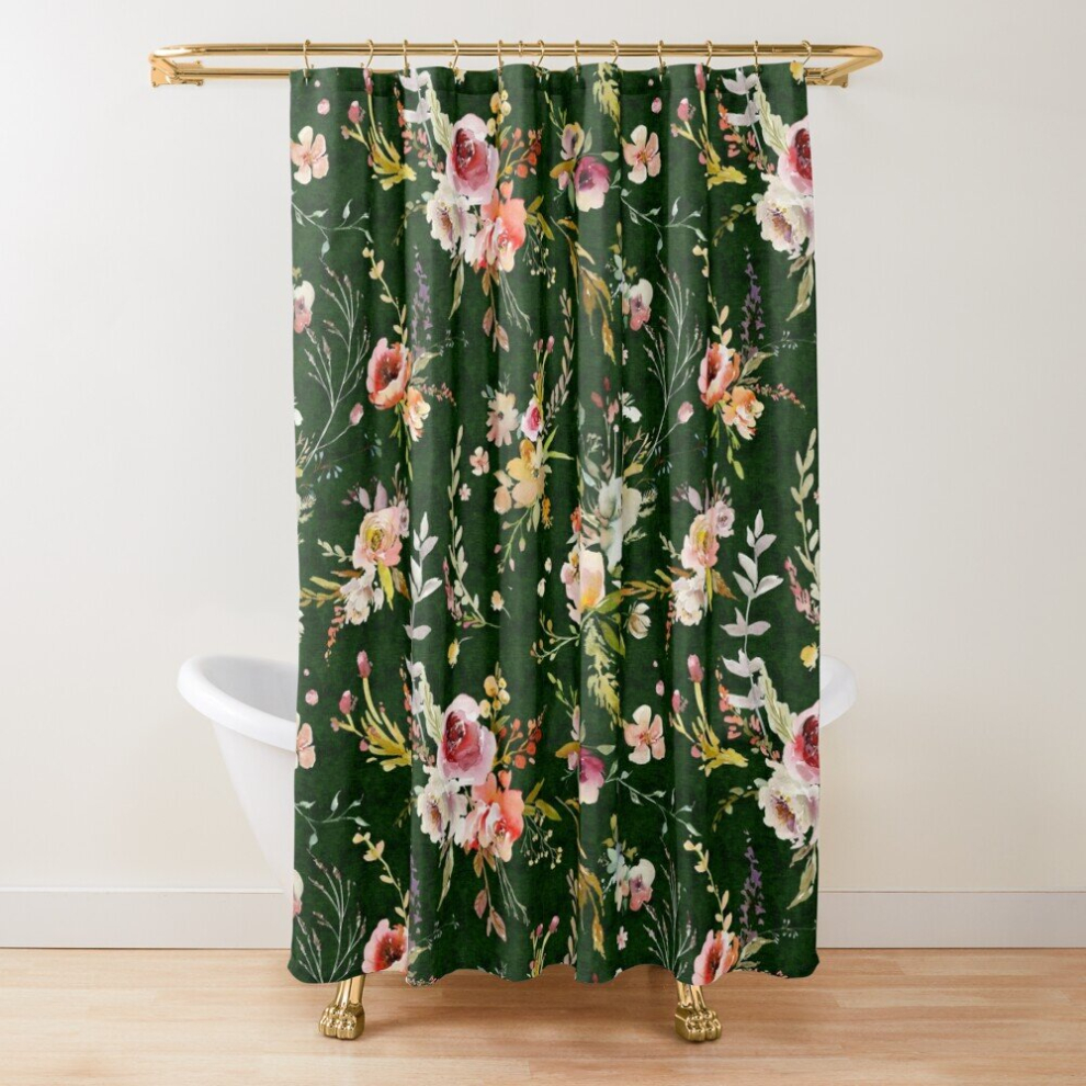 Shower Curtains Meadow Floral - Dark green for Bathroom Decor 72x72 inches