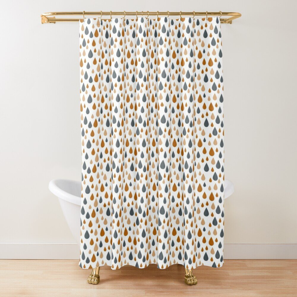 Shower Curtains Burnt Orange and Dark Blue Rain Drop Pattern for Bathroom Decor 72x72 inches