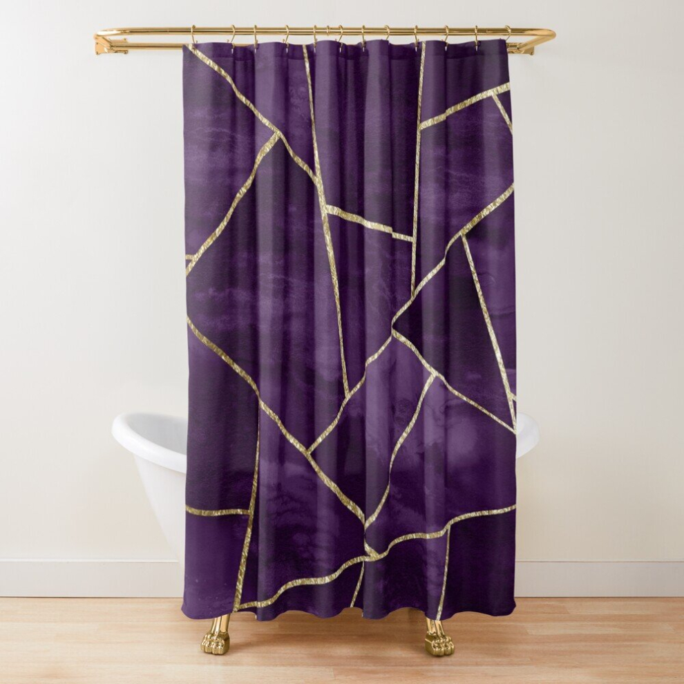 Shower Curtains Dark Purple Ink Gold Geometric Glam #1 #geo #decor #art for Bathroom Decor 72x72 inches