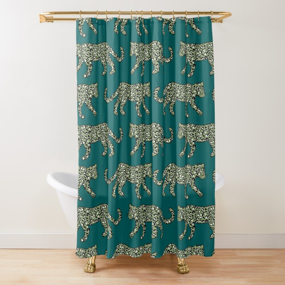 Shower Curtains Leopard Parade - Olive on Dark Teal for Bathroom Decor 72x72 inches