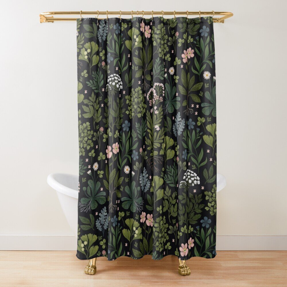 Shower Curtains Herbarium Dark for Bathroom Decor 72x72 inches