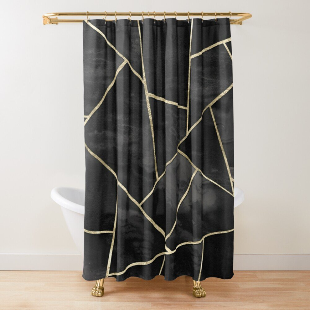 Shower Curtains Dark Black Ink Gold Geometric Glam #1 #geo #decor #art for Bathroom Decor 72x72 inches